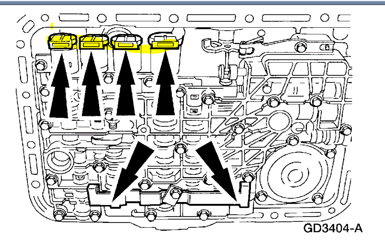 If you look at pic 26, I highlighted the shift solenoids. These solenoids are what cause the transmission to shift from one gear to the next. When actuated, the allow fluid to flow in a different direction and engage different clutch packs.