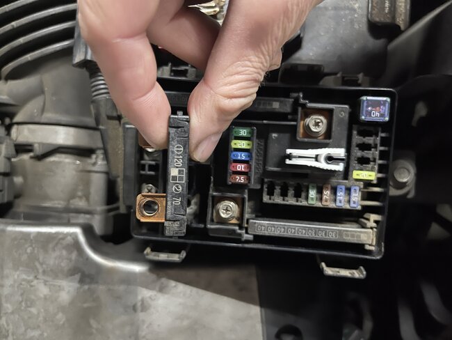Bought it non-runner. Battery dead and measures close to 0. With a jump box nothing, removed cables and attached to jump box still nothing, no lights on dash, remote does not work, no signs of life. If I am not mistaken, the box next to the battery has a fusible link or more. I removed one and i think it looks good if I am not mistaken. If i try to connect a wire from battery positive to one side of the fuse it sparks, the other side does nothing. There are 2 other ling ones but am not sure where to look first.