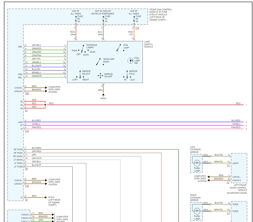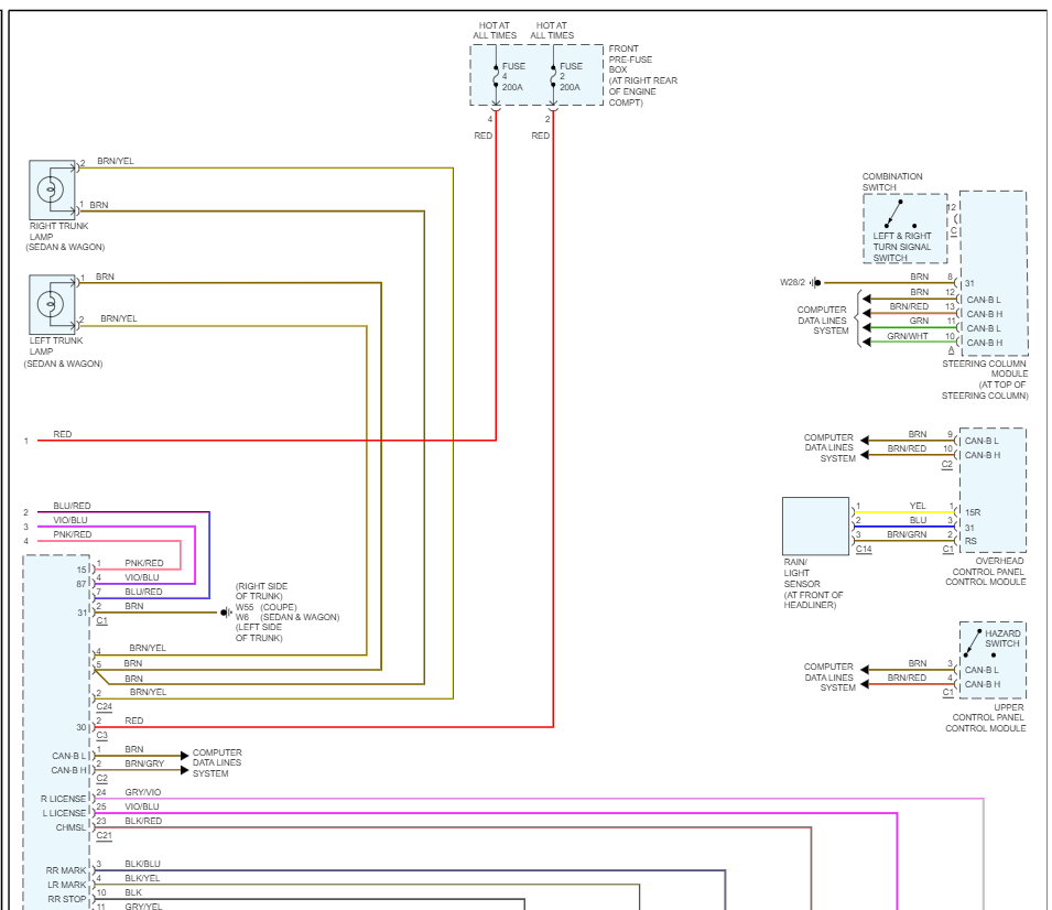 It sounds like the ground is bad, or the rear SAM module needs to be replaced. Here is the ground location and the rear light wiring diagrams as requested. Also, I have included how to change the rear SAM module out in case you need it. Check out the images (below). Let us know what happens and please upload pictures or videos of the problem so we can see what's going on.