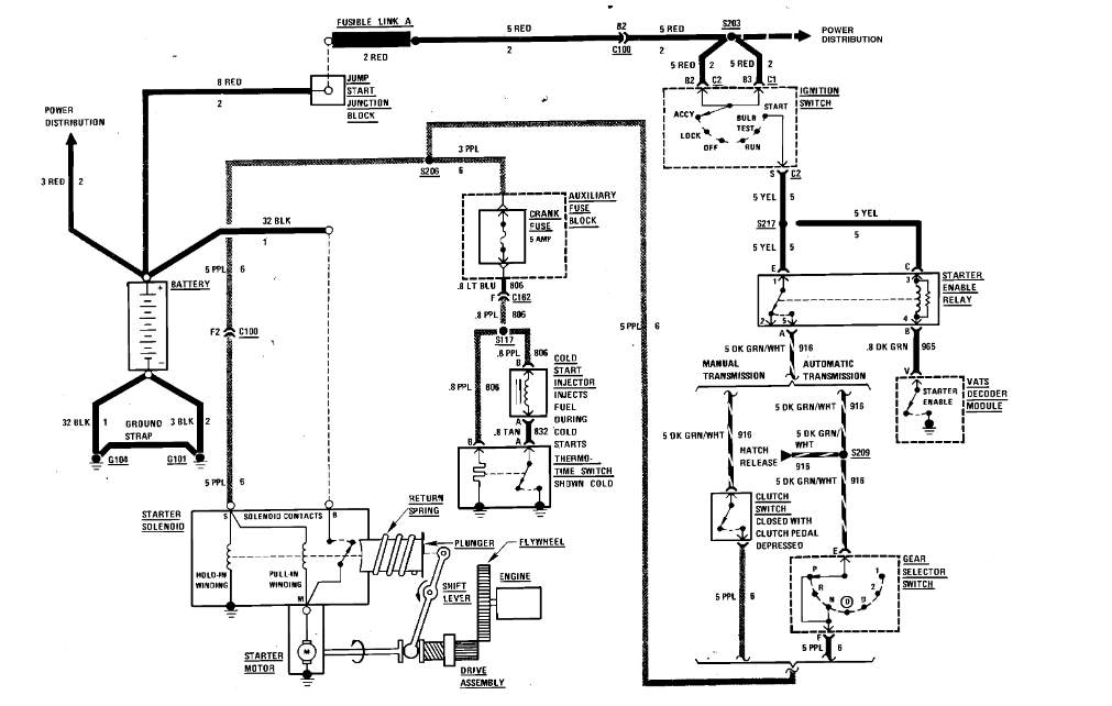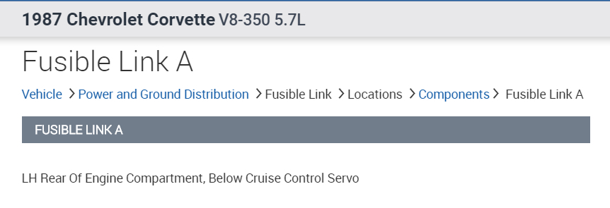 Okay, in the diagrams down below I have included a wiring diagram of the starting circuit on your vehicle and a description of where fusible link A is located, and a guide to fusible link inspections. Can you please inspect fusible link A and get back to us with what you find out. We can go from there.