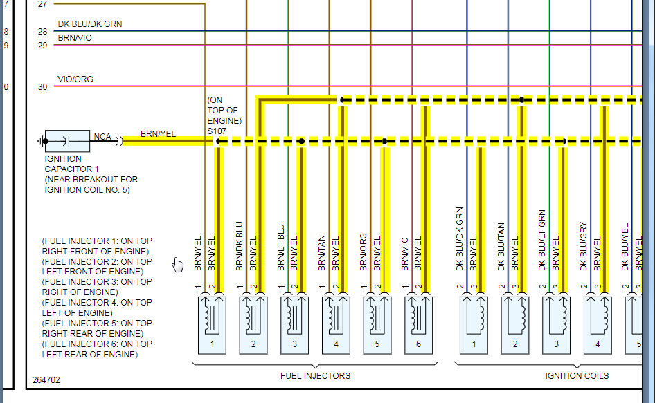 If you do have power to the injectors then your issue is with the PCM either not commanding the coils on or something telling the PCM not to turn them on.