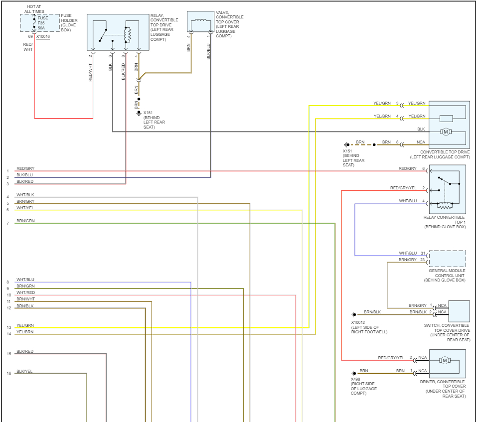 No what I meant is I cannot communicate with anything. I used to be able to via my Autel pro scanner, I can see over 50 functions for the top that I can monitor via the scanner including the fact that the button was pressed, top latch sensor open or closed, etc. Now all of them say N/A because something is not there, it happened few days ago and while i was using the scanner all of them came to life. I just can't put my hand on it as far as where the power stops. Can the relay by the hydraulic pump if bad cause that? It has power in the relay connector. I tried another used console switch for $20 and the same results, still no response from any button even though there is power and ground behind it. But found that TPMS responses but you have to hold it 15 seconds not 10. Turned out it's the same for old switch.