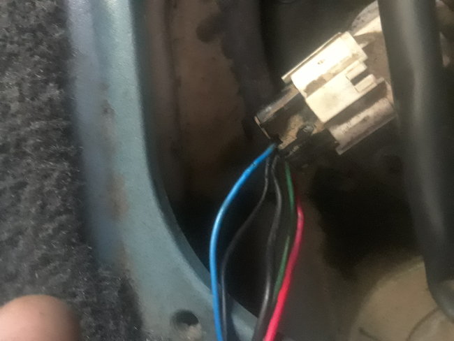 You say you have power on a black wire? Is it the larger black wire on the right next to the green and red wires? If so that is supposed to be a ground wire. If it wasn't grounded properly it will show power. Follow it and you should find it connects to either the middle of the car or runs up and behind the taillight. It is either broken or corroded off. I would simply run a test wire to a good ground and connect it to that wire. The pump should work then.