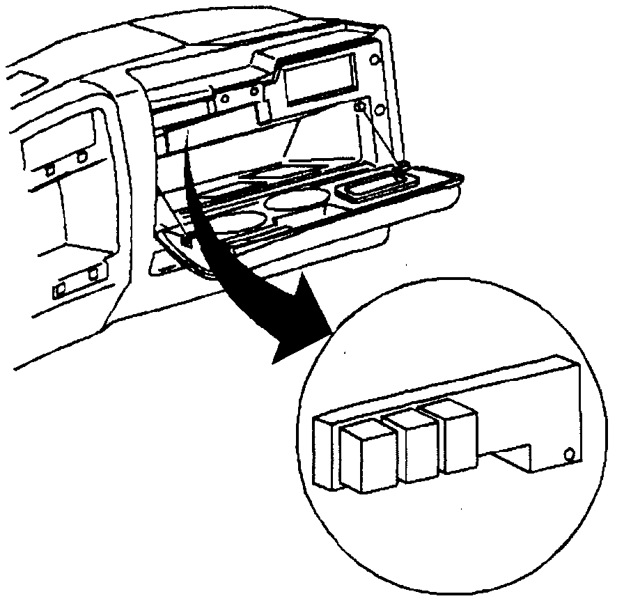 3. Remove the relay by depressing the bracket clip at the rear of the relay or by removing the bolts from the retaining bracket.