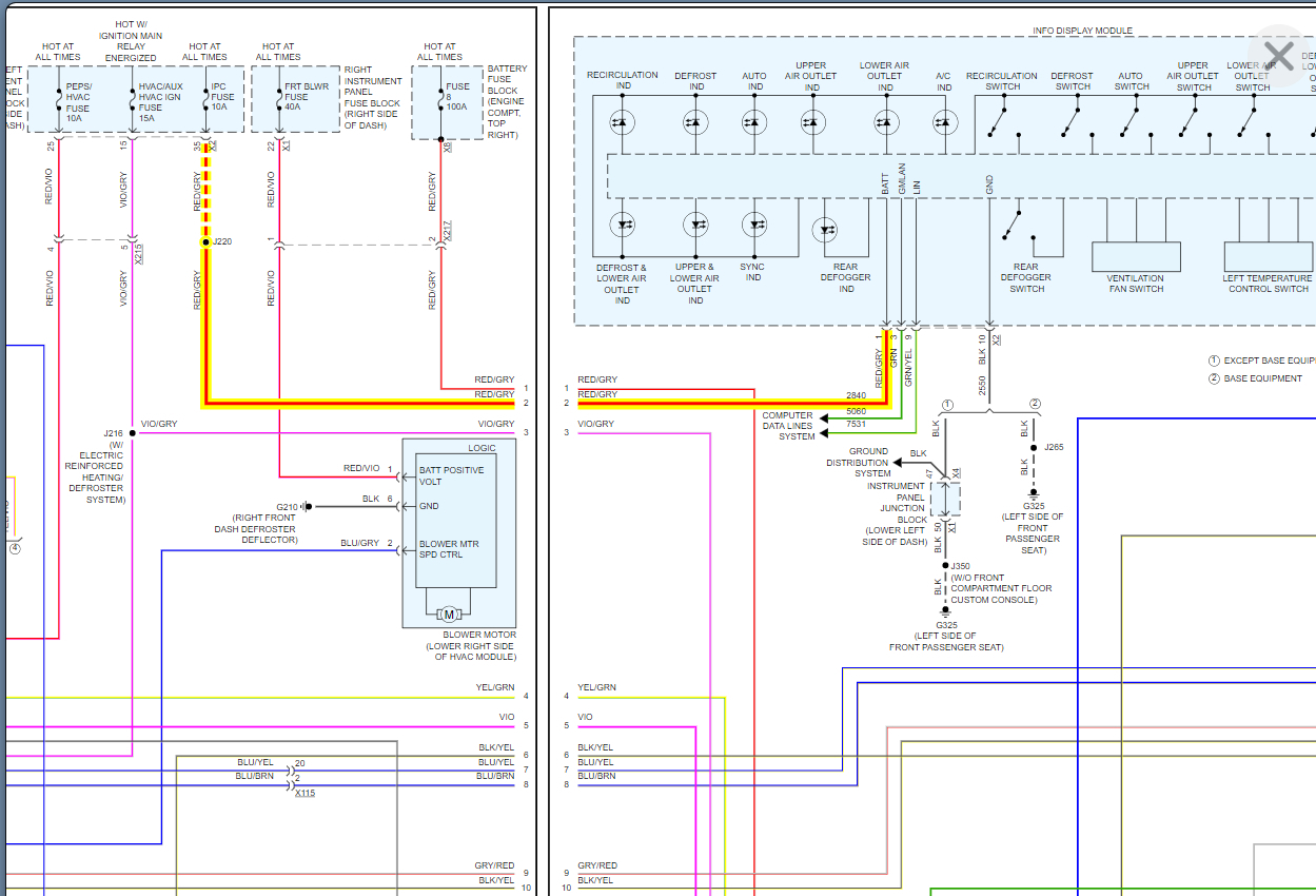 Sounds like your fuses are good. At this point it sounds like a possible HVAC controller. To be sure you can remove the controller and verify proper power and ground to the HVAC unit before replacing. I have attached the procedure to remove the HVAC controller, and info display module and what wires to check. The controller is different then the info display module which in your case is not working.Remove the controller behind glove box area and Check pin 1 at the HVAC controller connector x1 for battery voltage. If that checks good remove to info display module and check for battery voltage at connector x2 and check for battery voltage on pin 1. Also check for ground at pin 10 same connector the black wire. If you have good battery voltages on these checks It sounds like you may need a info display module. Could be something else please let me know what you find on your voltage checks.