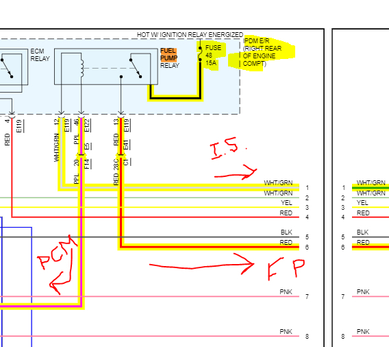 See pic below. Sorry about the poor handwriting. LOL, I'm not too good with a mouse. The IS that looks like I5 indicates the ignition switch.