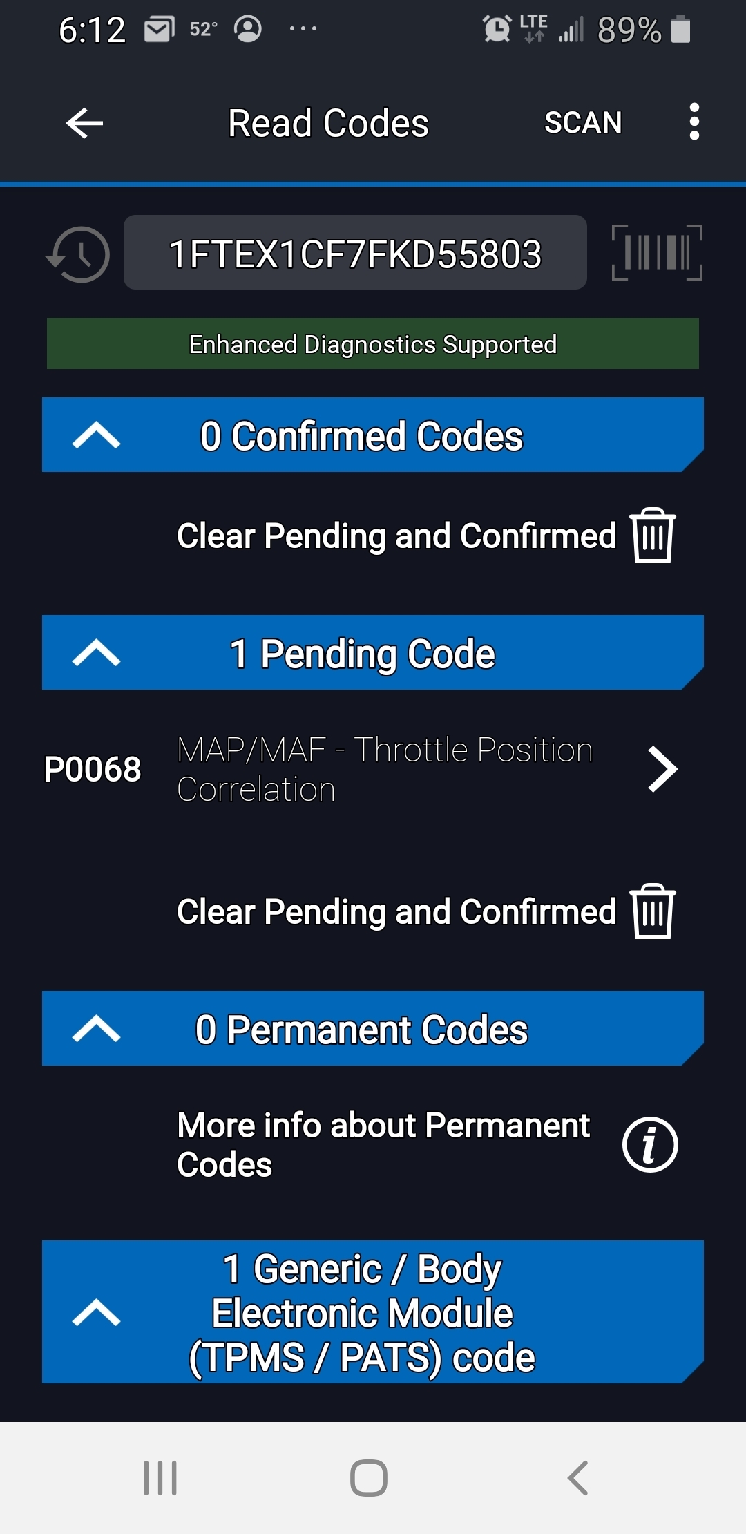 Truck runs fine unless I punch it. At 20 MPH the RPMs increases to 4 speedometer goes to 55 and stalls. At 55 MPH and I punch it transmission shifts to 3rd gear RPMs go to 3 speedometer stalls at 65-70 with pedal to the floor. No check engine light but my scan tool which is a blue driver has a fault of po068. The first 2 images are from today. I removed the negative and cleared the system. The remaining images were from driving for several days.