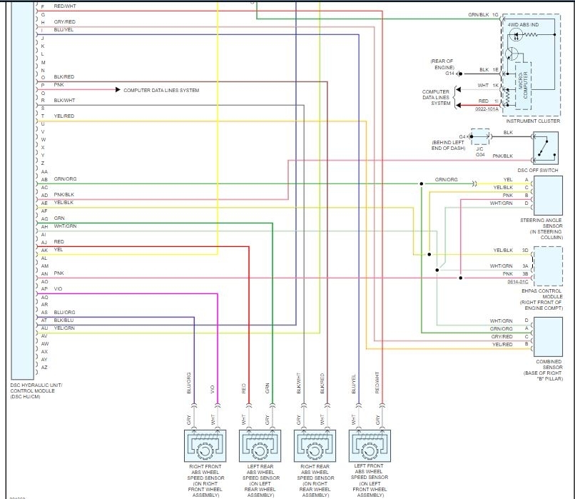 okay, i got the correct one, so you're working on the left front wheel, white to blue/yellow and grey to red/white, correct? so you don't have DSC according to the wiring colors. here's the pinout for the ABS module. And did you have a code for the wheel speed sensor? or what made you want to change it out?