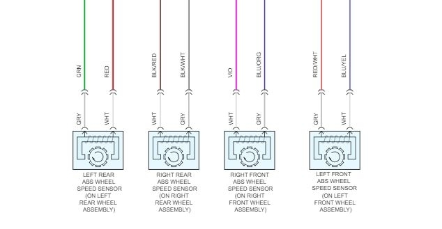 Hello, make sure you put the wheel sensor in correctly, they only go in one direction. Here's the pin out of the ABS circuits. Verify wire colors to make sure it's the correct diagram. Just to be positive. This car is a next generation model.