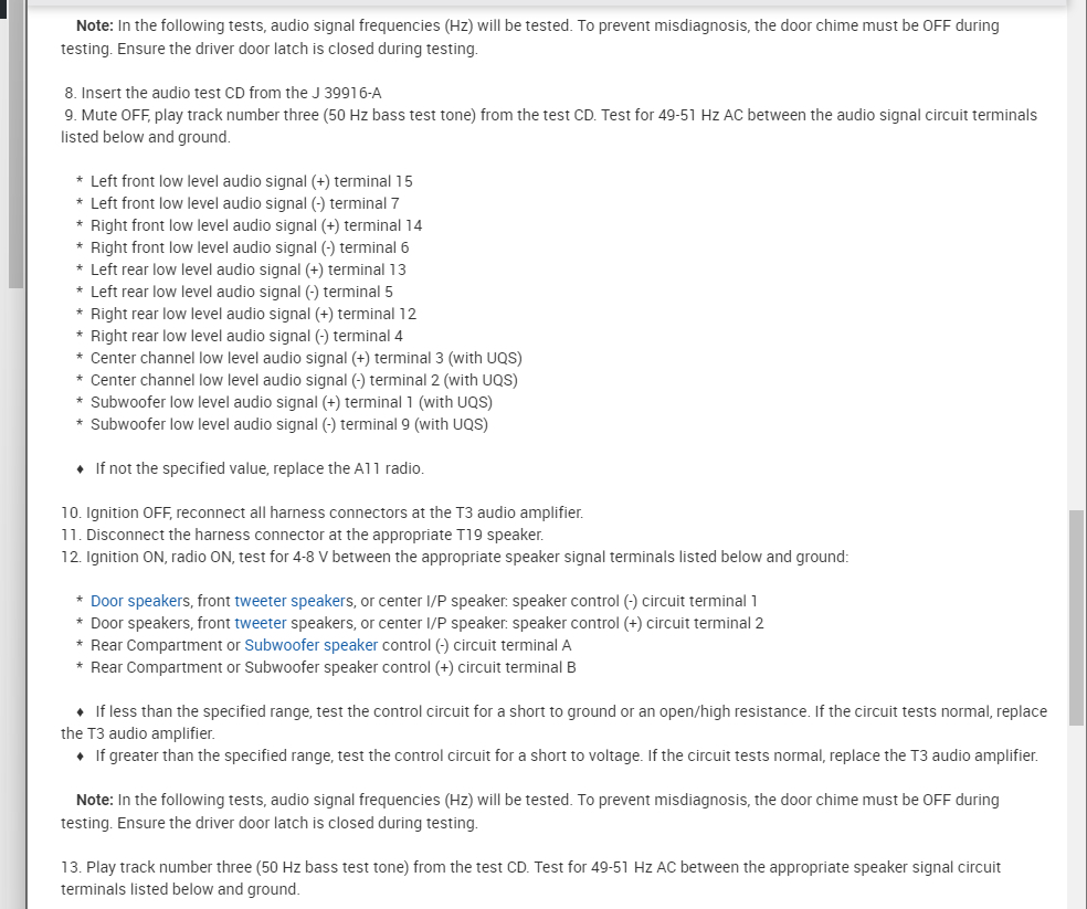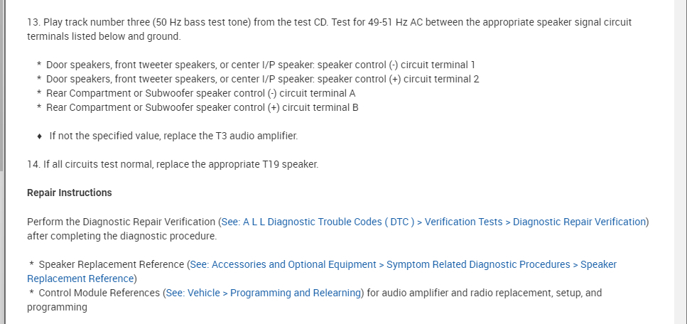 I am attaching the testing below if you are not getting sound to one speaker so let's just pick one and confirm the radio is the issue.