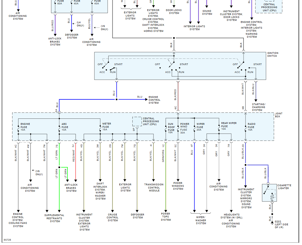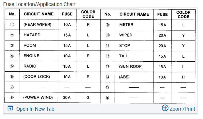 I am not sure if these will help, the info was kind of vague, but I did find the fuse layout. Check out the images (below). Let us know what you find.