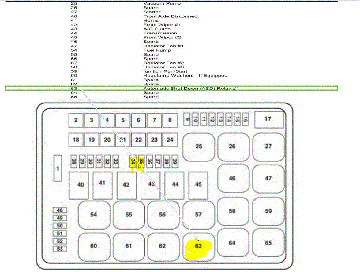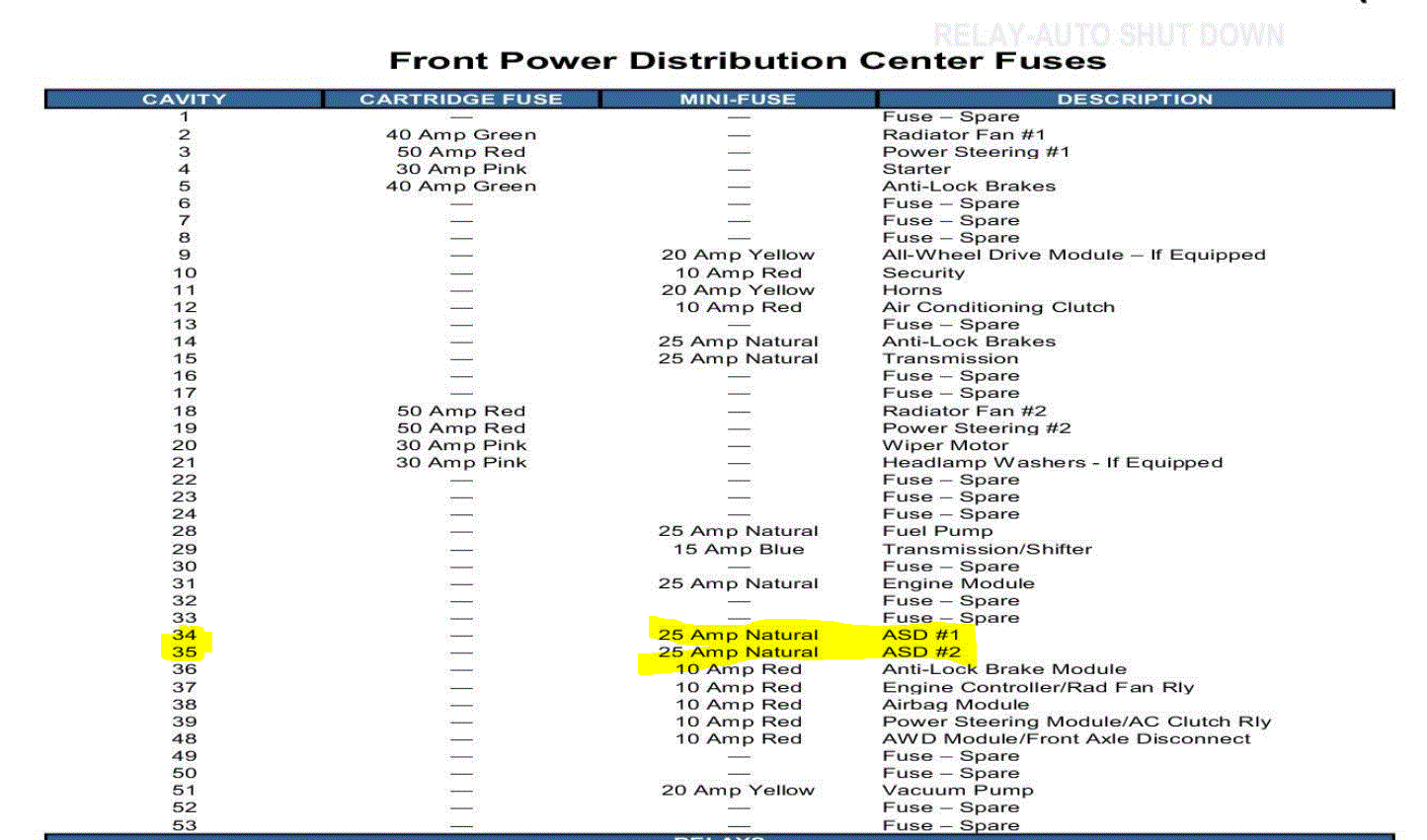 The ASD relay needs to be checked as well. ASD stands for automatic shut down. This shits the engine down in the event of an accident.