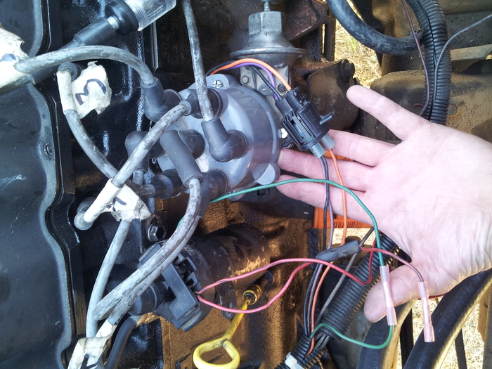 the problem was prior to that mess of wires coming from the distributor. those happened while trying to fix this firing problem. broke the connector to the distributor and broke a wire of of the coil connecter. replaced the connector to the coil with s factory one