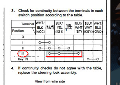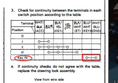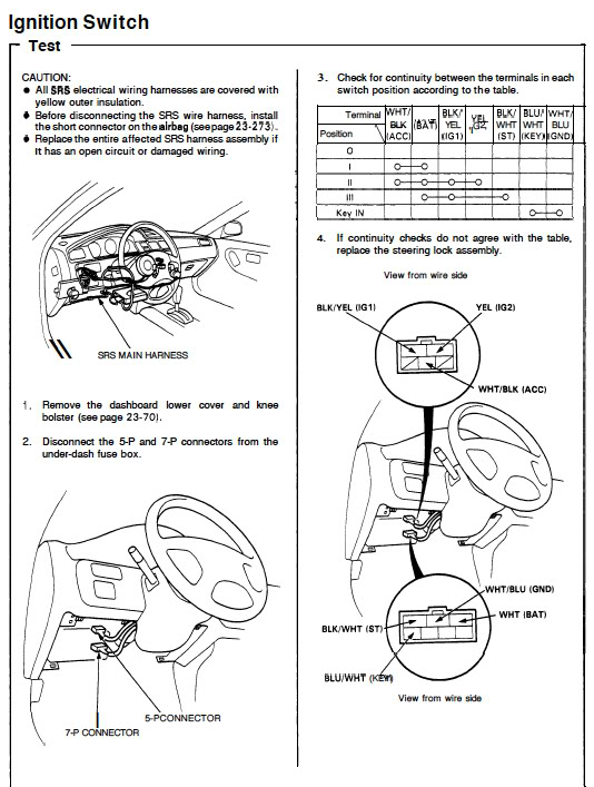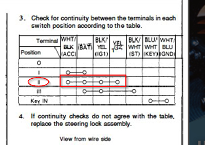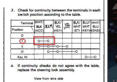 Use a voltmeter to check for battery voltage between the WHT/BLU wire and the body ground with the ignition switch ON.