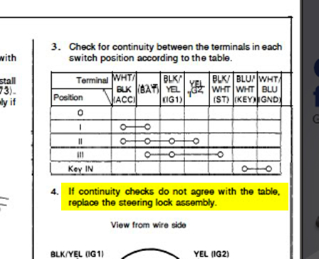 Use a voltmeter to check for battery voltage between the BLK/YEL wire and the body ground with the ignition switch ON