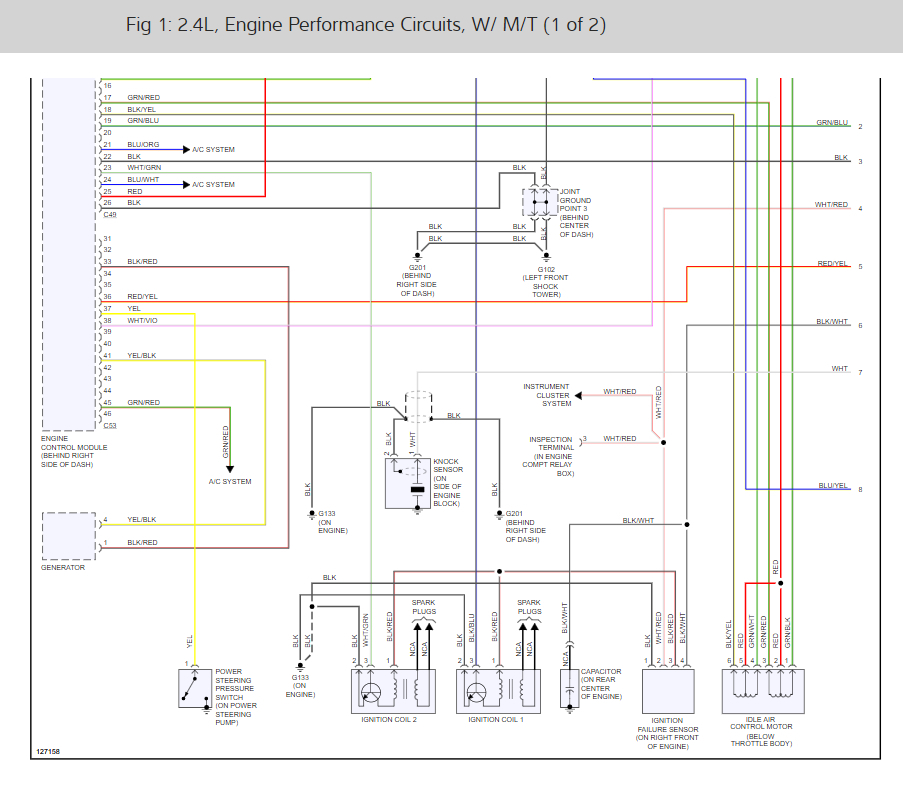 Thanks for your answer and diagrams but honestly I've hit a side wall with this no spark issue. I mean I'm not new to working on cars by any means but when it comes to electrical wire chasing issues or relays to figure out the no spark issue I'm just not the guy for that. so anyway this Mitsubishi eclipse is a 2000 2.4 gs manual transmission the engine has good compression in all cylinders. I just can't figure out this spark issue so my new question for you is. I have another 2002 Eclipse 2.4 gs automatic transmission that the engine needs a lot work head gasket, balance shaft belt broke ,has something ticking in the engine anyway that all being said I need a car so is it possible for me to just pull the engine out of the 2000 eclipse gs 2.4 (engine has good compression just no spark) and put the engine in the 2002 eclipse gs 2.4 and (this car runs but needs engine replaced so with swapping engines. my no spark issue should be gone; so swapping the engine out makes sense to me so other than having to use the original intake manifold off the 2002 Eclipse everything else looks to be identical so can I do the swap. I'm really sorry for the long story I was just trying to give as much information of the problem and my ideas of getting a vehicle running. I live in the Pacific Northwest it rains 9 moths out of the year. any input is greatly appreciated. thank you