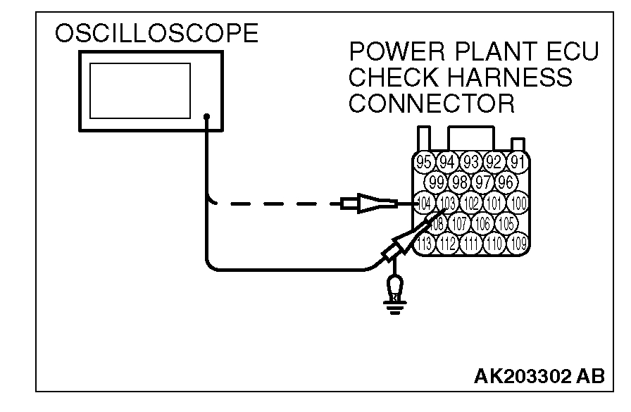 3. Connect the oscilloscope to check harness terminal No. 103. (Check the crankshaft position sensor signal wave pattern.)