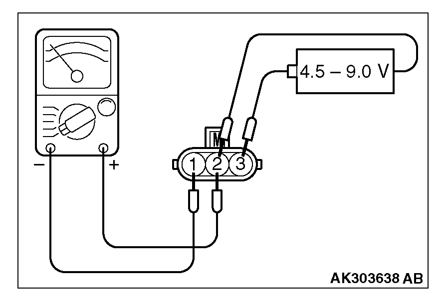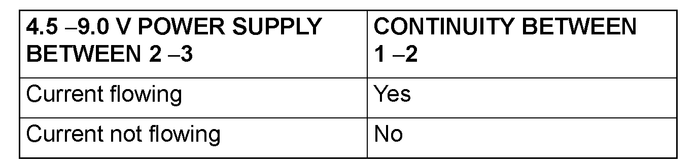 1. Connect and disconnect 4.5 - 9.0 V battery between terminal No. 2 and No. 3, and observe the ohmmeter whether there is continuity or not.