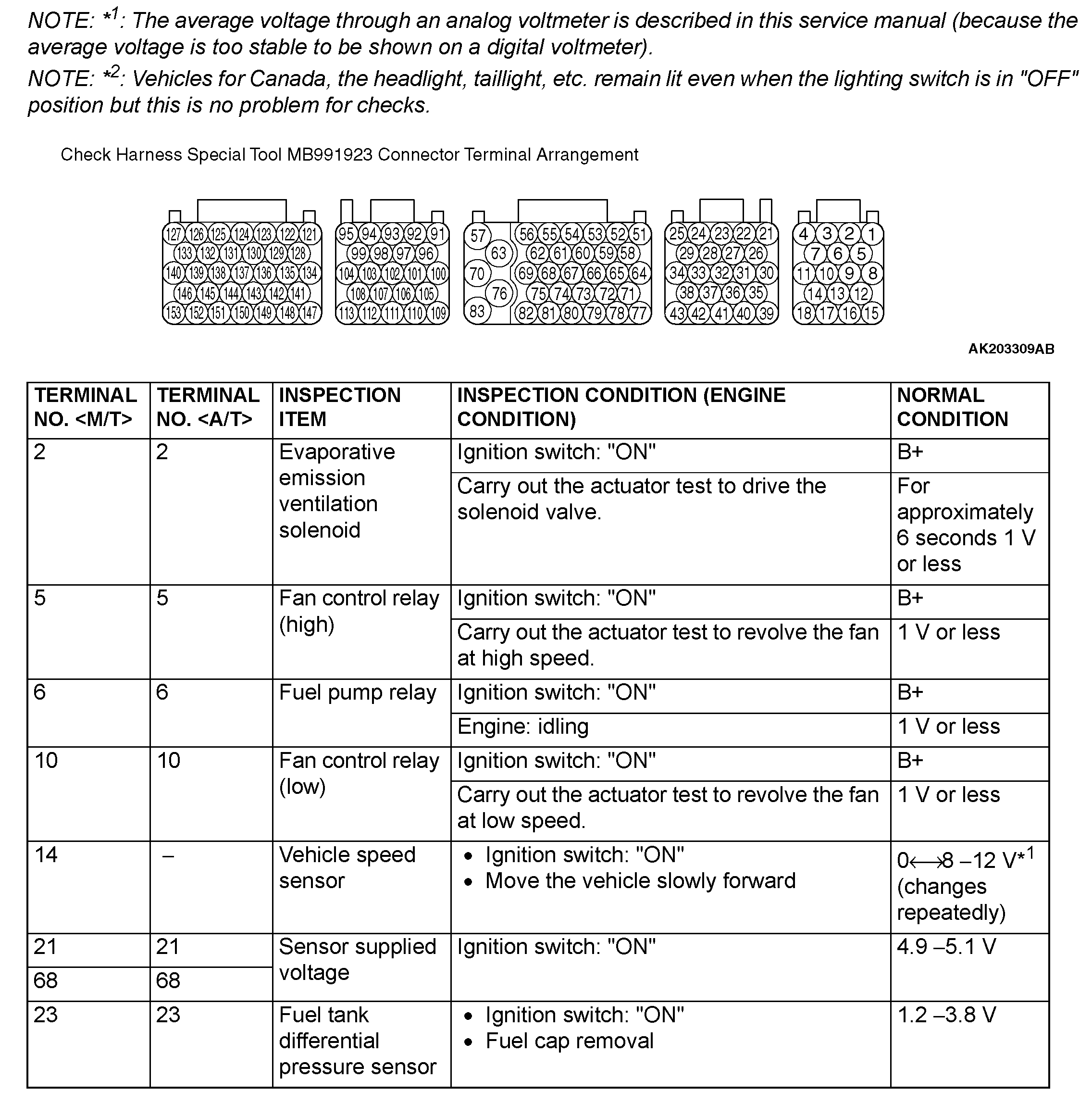 Check Harness Special Tool MB991923 Connector Terminal Arrangement Part 1