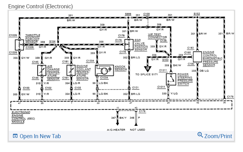 The self test connector is on the drivers side inner fender well. Check Pic for shape of connector. Then hook up a jumper wire as shown in the diagram below. Turn your key forward to the RUN position (KOEO, key on, engine off), and after a few seconds the codes will begin to flash through Engine Light or if you have hooked up a voltmeter, the needle on the voltmeter will indicate the digits of the trouble codes in sweeps of the needle. Record all codes and identify them as KOEO codes.