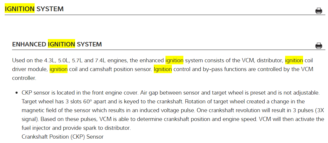 Also in the diagrams down below I have included a diagram of the location of the CKP, Original Equipment Manufacturer(OEM) part number, and the instructions for the removal and installation of your vehicle's CKP. Please go through these guides and get back to us with what you are able to find out.