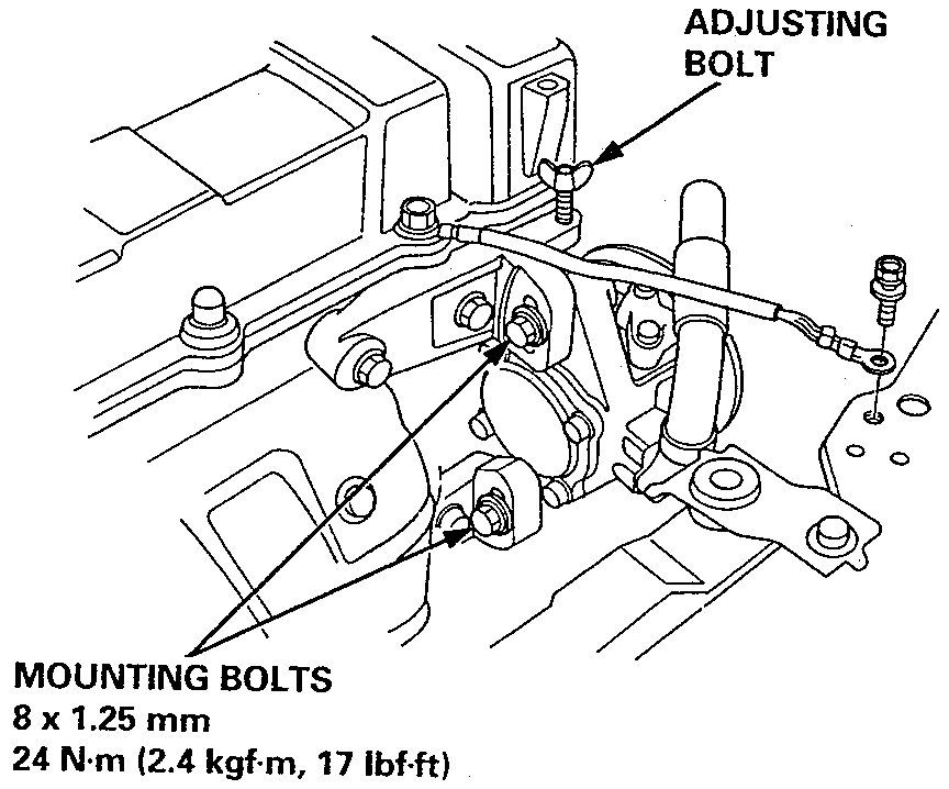 2.Loosen the adjusting bolt and mounting bolts, then remove the P/S pump belt.
