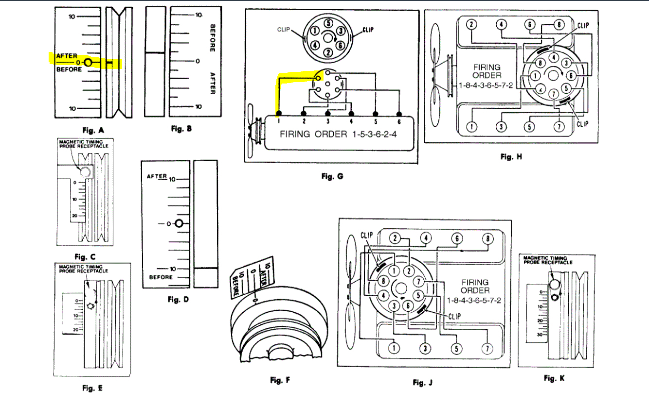 Now, I attached a pic below to help you visualize what I'm explaining. The easiest thing I can explain is this. Place the timing mark on the crankshaft on top dead center (TDC). Remove the distributor cap and snap a pic of the rotor's position to help you remember.