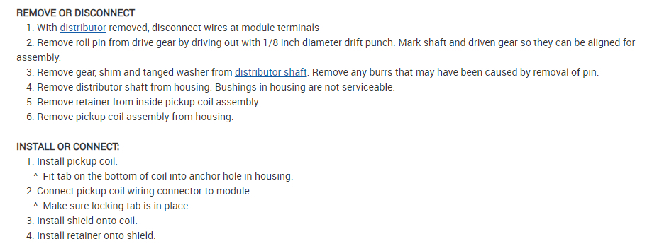 Also, we need to make sure the pick-up coil is working. I attached the directions for testing it below. Note that I also attached the wiring schematic so that you would have a reference. The only one I have is the OEM schematic, so it is a little difficult to follow. Let me know if you have questions.
