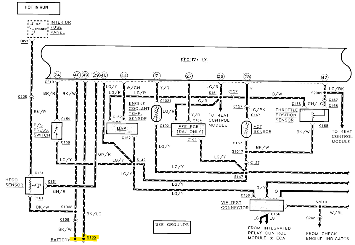 Also, another thing is watching for the Check Engine light to come on at key On, it should come on for a few seconds, if not, then the PCM is not powering up fully. Low power feeds to the PCM is common on vehicles this age. If there isn't a full 12volts making it through the PCM relay, low voltage can be tricky, some components tend to work, and some don't. Here are a couple videos on the EEC-IV system with no spark, they should help.