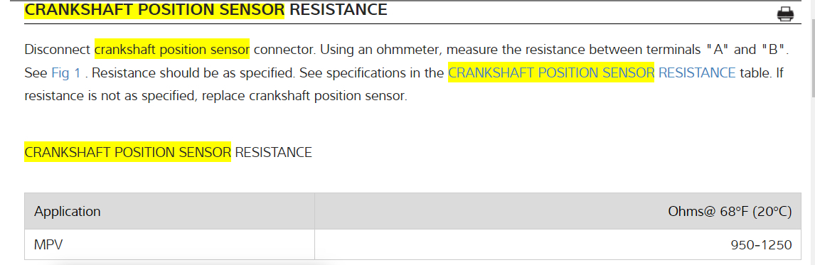 Hi there, did you receive my reply on this? the crankshaft position sensor read 1176 ohms. still no spark.