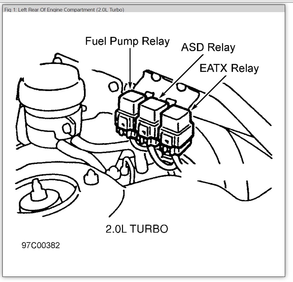 To verify the rest of the ASD relay circuit is working, monitor the voltage at the ignition coil or any injector with a test light. A voltmeter will work too but some don't respond fast enough to be accurate. You will see the test light light up for one second after turning on the ignition switch. That tells you the circuit is working and the computer has control over the relay. The test light should turn on again during engine cranking. If it does, and it stays on steady, you have a fuel pump OR a spark problem. Both are relatively rare. Most commonly the light will not turn on during cranking. That's when you look at those two sensors.
