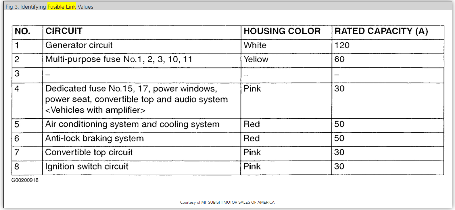 Ground wires appear to be black with a green stripe, (B-G), (I have a hard time with Mitsubishi wiring diagrams). They should have close to 0.2 volts. That's terminal # 2.