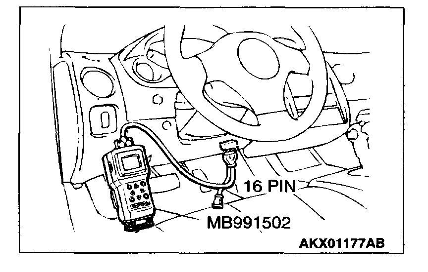 CAUTION: To prevent damage to scan tool MB991502, always turn the ignition switch to the "LOCK" (OFF) position before connecting or disconnecting scan tool MB991502.