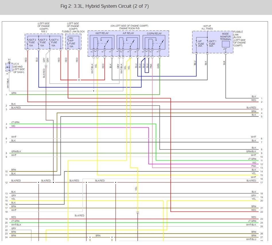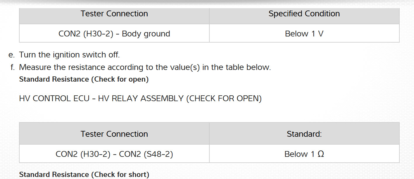 seepics this may be a wiring issue or connection as well as hybrid ecu or relay do testing in order of pics.