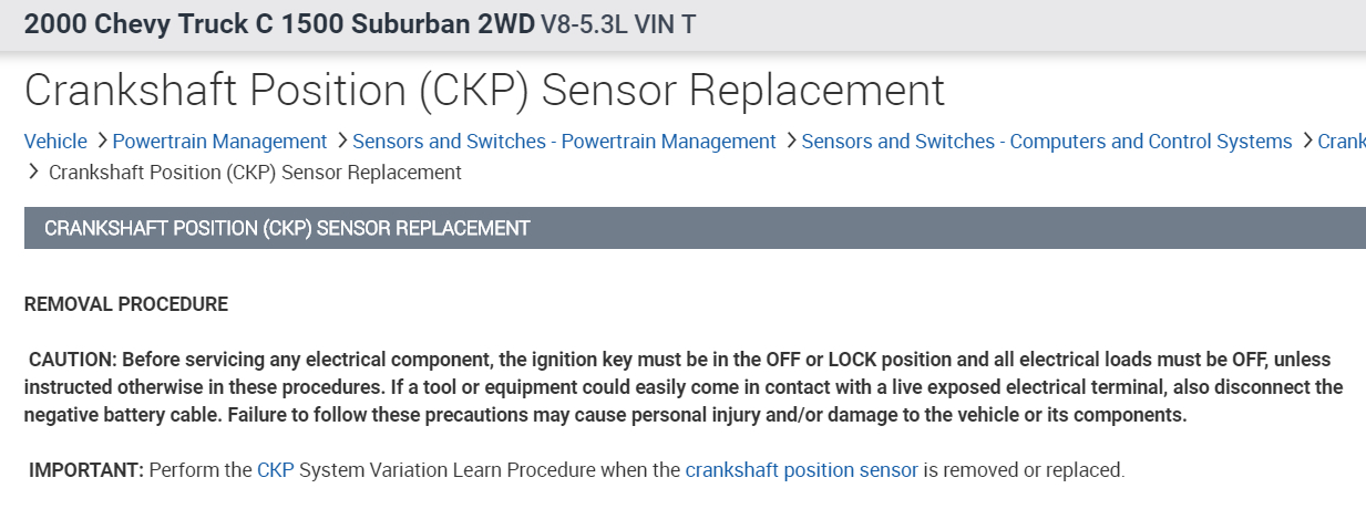 IMPORTANT: If the CKP System Variation Learn Procedure cannot be completed successfully, refer to DTC P1336 Crankshaft Position (CKP) System Variation Not Learned for additional diagnostic information.