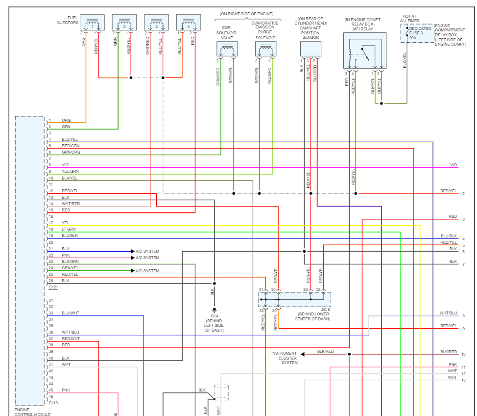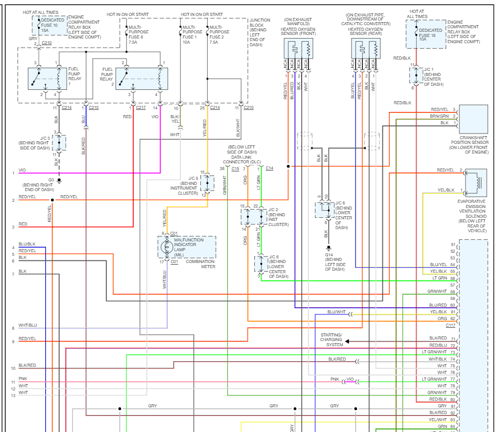 Short on MAF harness and now no start replaced both coils the MAP sensor the MAF sensor and the crankshaft position sensor and it seems to drain the battery fast when I try to start it. P0335 and p0113 codes. What are the wires to the MAF sensor from left to right in color coordination.