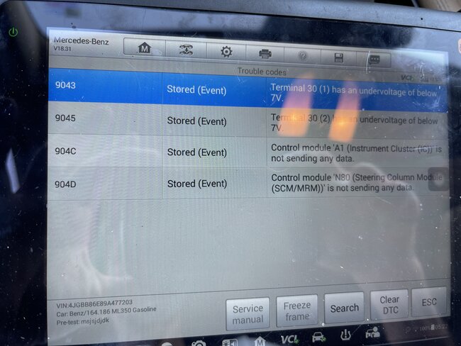 Here are the descriptions of the diagnostic trouble codes (DTCs) you provided for a 2009 Mercedes-Benz ML350: