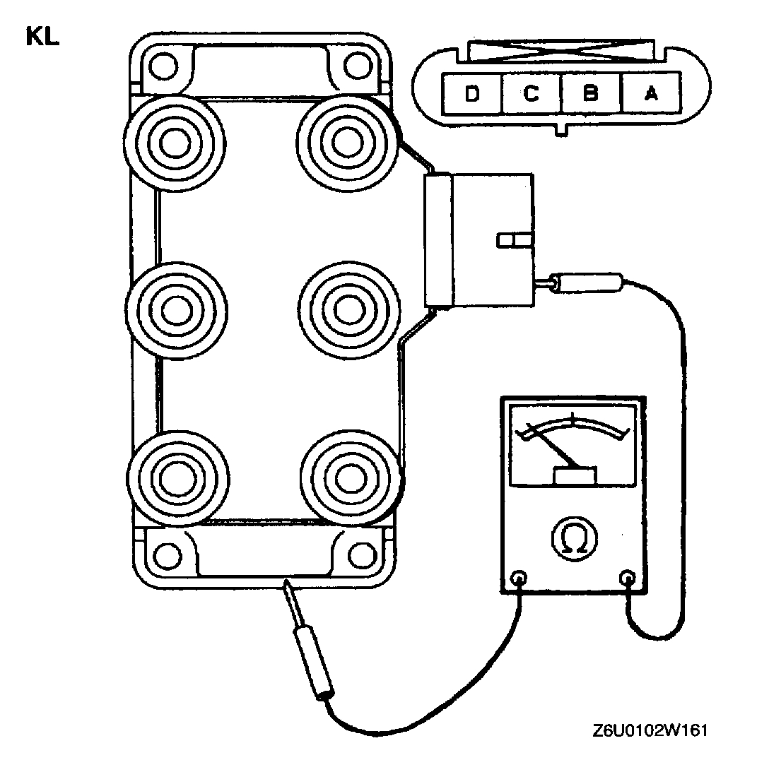 2. Measure the insulation resistance between terminal B (FS) or D (KL), and ignition coil case using an ohmmeter.