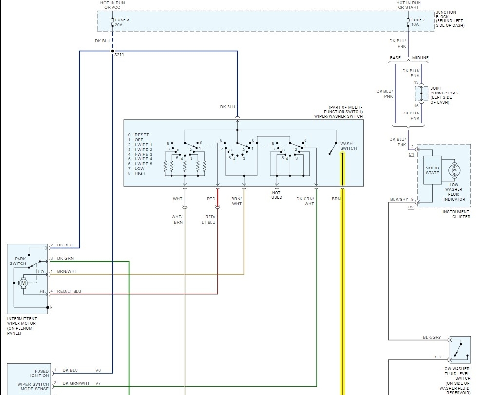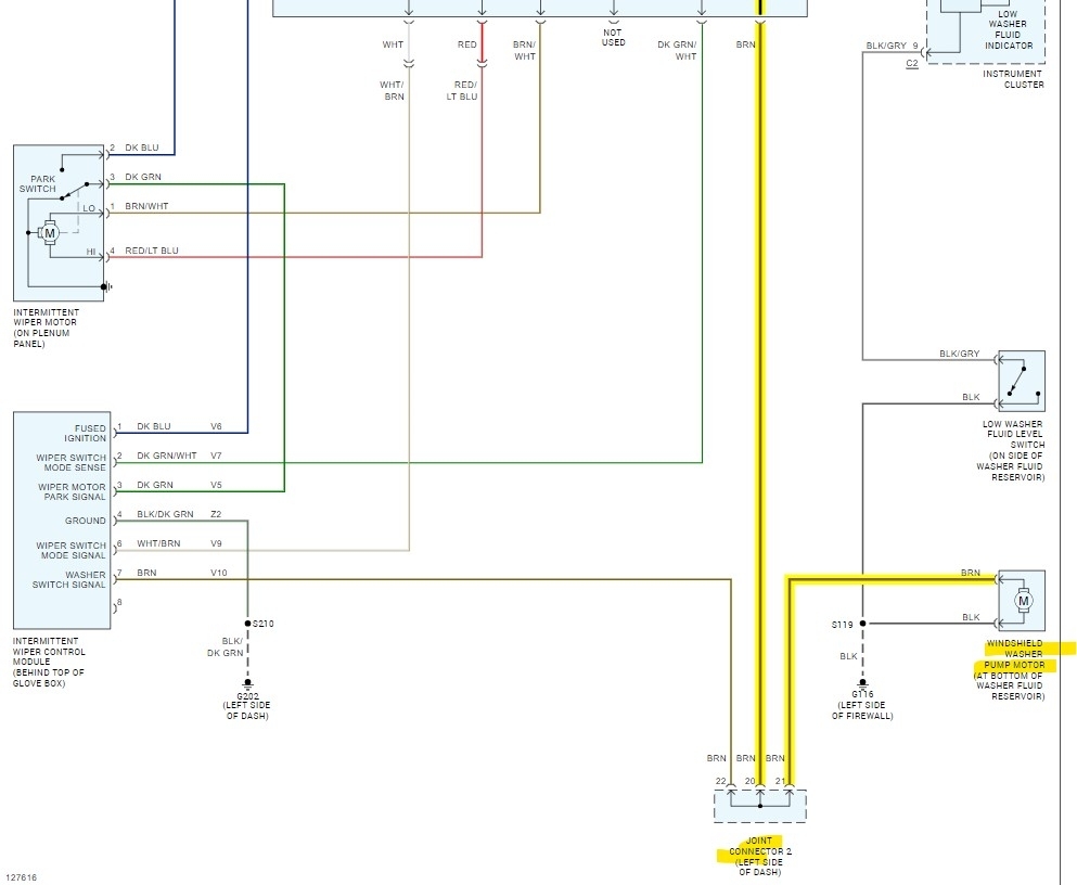 While I'm waiting for the new PCM I figured I'd replace and repair a few little things on the van. Would you have the wiring diagram for the windshield washer, the fuse is good, wipers and blinkers work, I checked for power to the washer and found none.