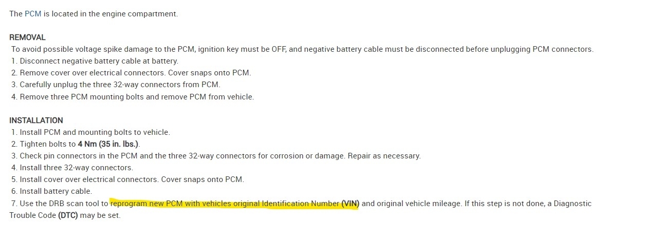 Just FYI, service info requires a VIN to be programmed into a new PCM using a capable scan tool. I'm not sure what options they gave you at the auto parts store, or where you ordered it from. But if you order from Flagship One, they can preprogram the VIN for you, so the module is plug and play.