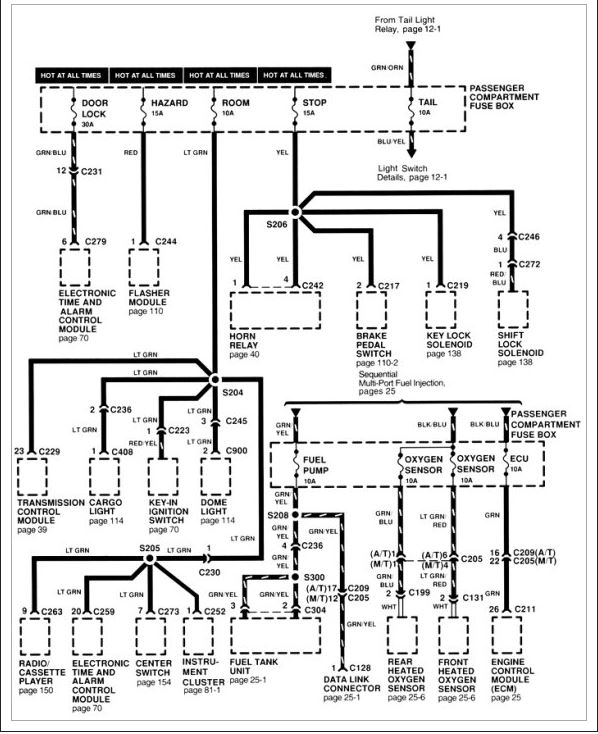 Have no tachometer, speedometer, no fuel gauge, no temperature gauge. Also, my hold button for the transmission will not work. The light does not even come on switch from econo to power light does not come on. Having to manually shift, it will not shift on its own. AC will not come on. Checked all my fuses. Everything seems to be in order. I am thinking maybe relay or something. I just noticed it yesterday when I was on my way home from work. If I just put it in drive it would not go anywhere hardly at all if I manually shift it runs fine.
