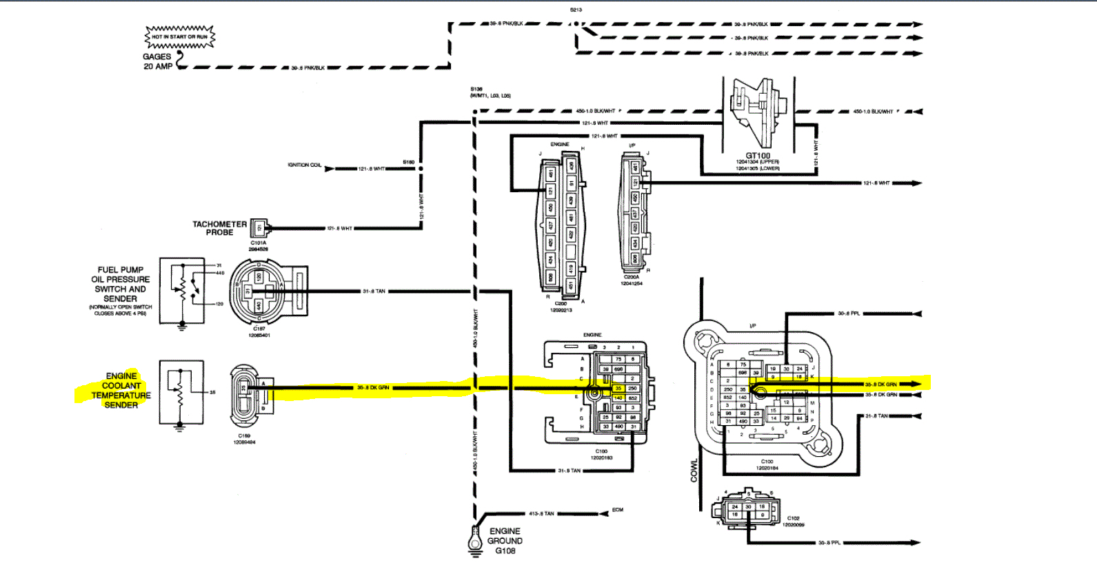 I grounded the pigtail and the gauge went to hot so I know everything going to the cluster is good. I tested the resistance on the temperature switch and it was around 2000 ohms cold and it dropped when I put it in hot water. Don't know where to go from here. Truck listed above is a C1500 350.