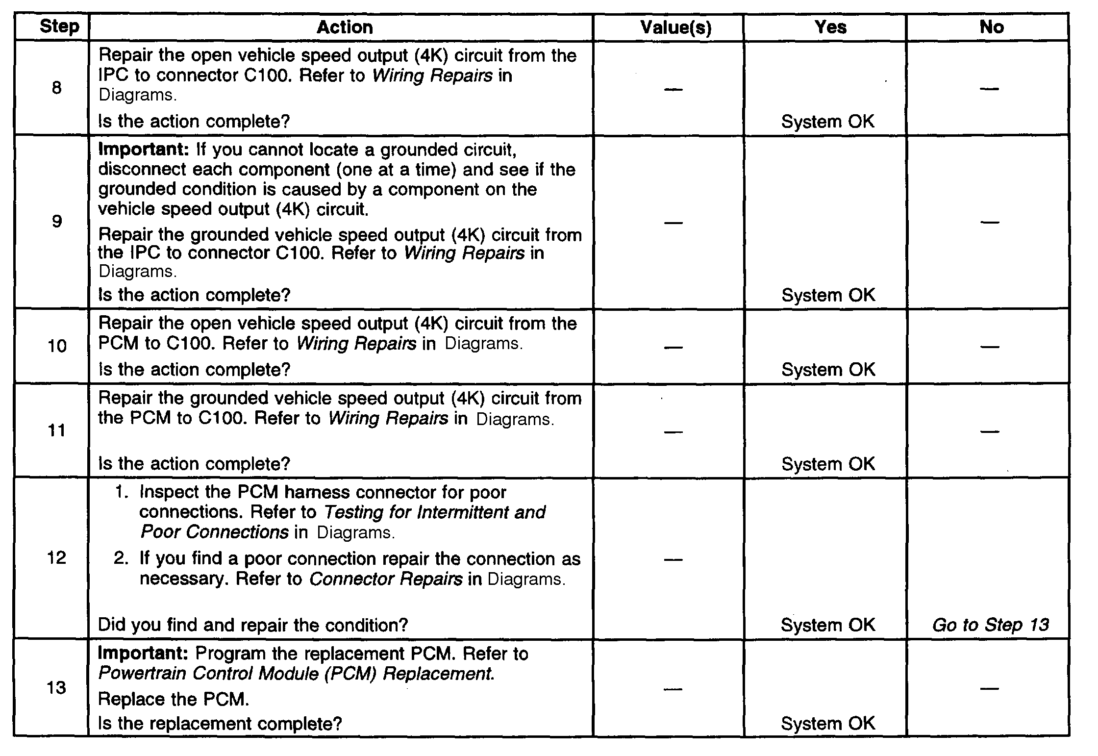 6. This step is testing for an open circuit between the PCM and connector C100.