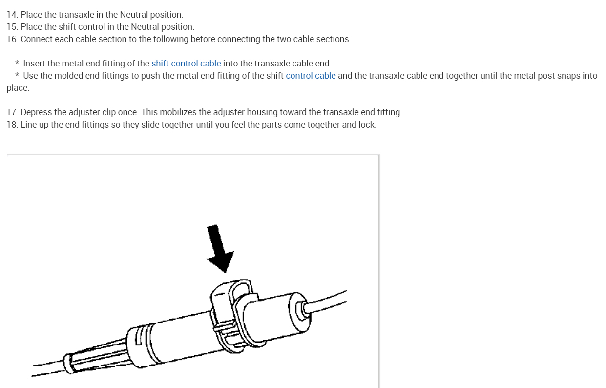 I found the problem after working my way through the center console! Thankfully I didn't have to remove anything further. I was wondering if you might know what the yellow rubber gasket is called though. It seems I am missing the one behind my transmission. I tested the shifting with the cable back on the ball, and the vehicle recognizes gear change, and I do see movement on all parts down there.