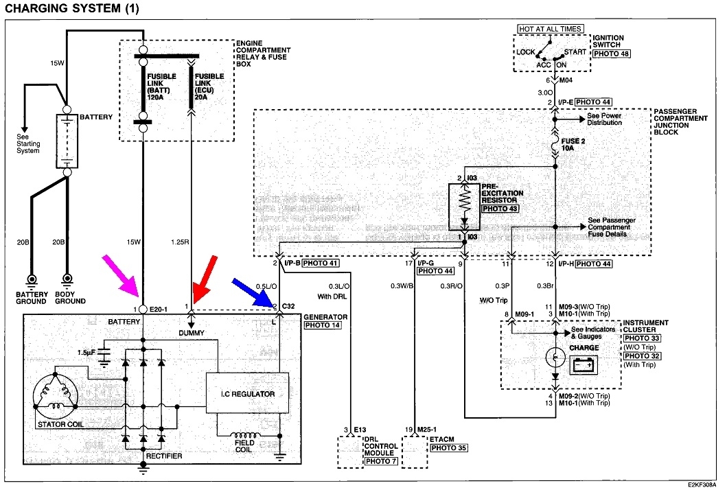 Here's another version of the charging system diagram. If any of these are too hard to read, you can copy them into a typing program such as MS Word where they can be expanded, or I can cut them into smaller pieces, then expand them for you.