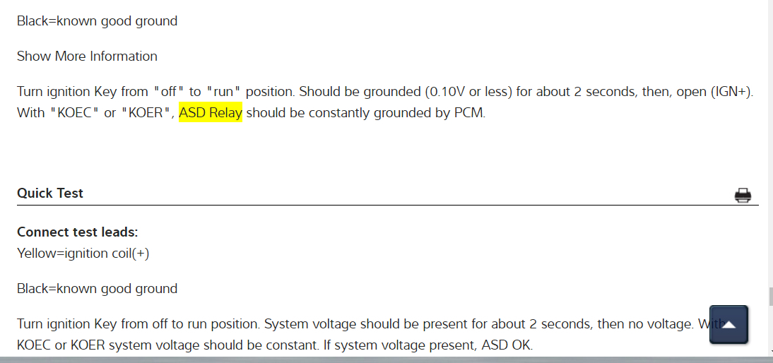 This could be a problem with your Automatic Shutdown Relay (ASD). It is located in the Power Distribution Center (PDC) in your vehicle's engine compartment by the battery. It controls power to the coils, which in turn provide electricity to the spark plugs, making them spark. In the diagrams down below I have included all the information that you will need to test and if necessary replace the ASD relay. Please get back to us with what you are able to find out.