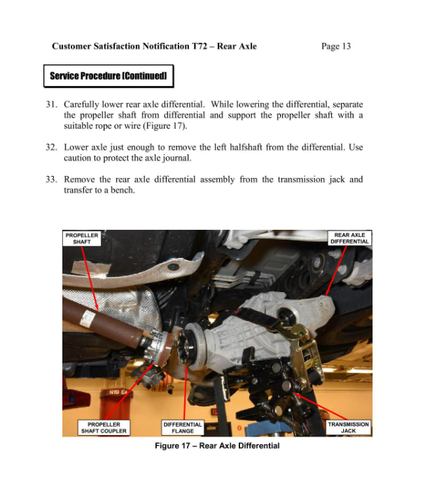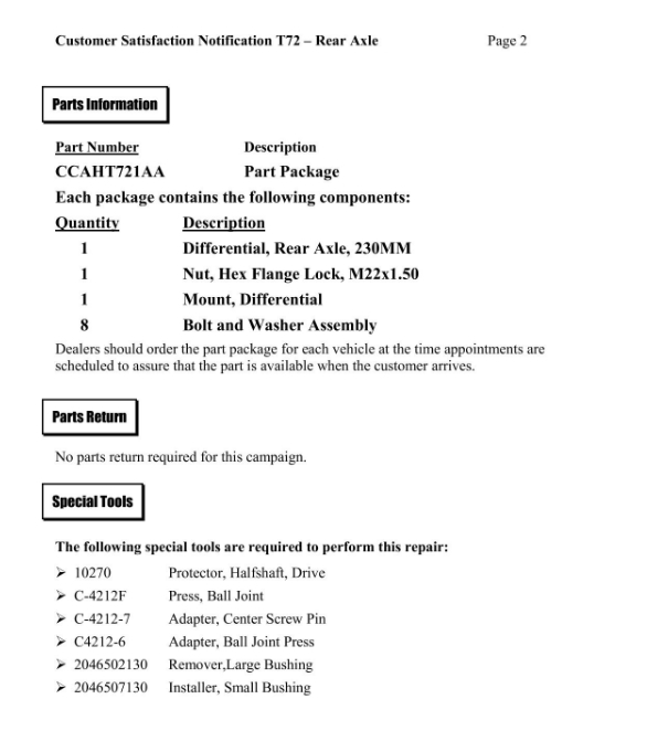 We are going to locate the origin of the noise, front, back or middle of the vehicle. The unusual suspects are the driveshaft, rear differential or transfer case. There is a 19 page TSB that shows they had a problem with the rear differential and the bushing that mount the differential which I have found and are in the images below. Check out the diagrams (below). Let us know what happens and please upload pictures or videos of the problem.