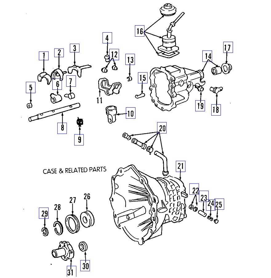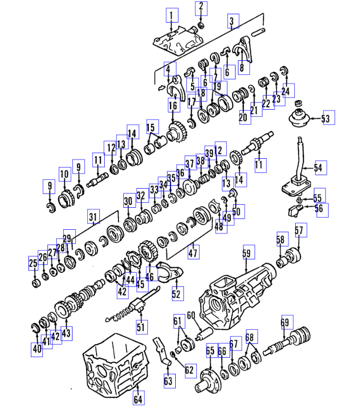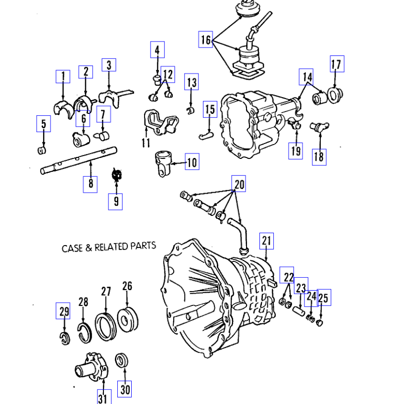 If you remove the shift lever again and look at your picture the yoke (part 11 that looks like it has the ears and screwdriver slots on each side) is supposed to rock from side to side while in neutral. The socket 10 that the shift lever goes into on the other hand slides front to back. When they bind it's normally because one is trying to slide out of say first gear, but the yoke is setting in the middle like it's in neutral. That appears to be the way yours is at the moment. So, you need to move both to get it back into neutral. If you cannot get it back into neutral, then you will need to split it and look at the 3 shift forks and see if one of those tipped the wrong way.
