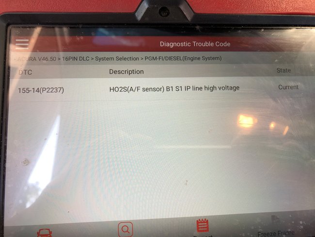 Okay, those numbers let me find a bit more. Acura shows the 155-14 code as almost identical to a P0155 code, except it is an issue with the Os sensor being shorted to a higher voltage. I would verify the ground for the sensor as a bad ground could cause the signal to be elevated. If the ground is good then monitor the sensors output to see if it's correct and changing the way it should. My bet is that it is showing a voltage higher than it should and that is setting the code. Check the green wire to the sensor for a problem.