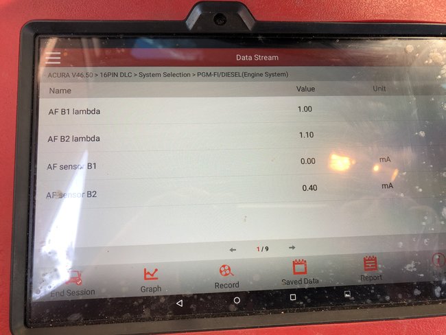 Being an AFR sensor and not a standard O2 sensor they can be a pain. The scan tool should read the lambda, amps and voltage from the sensor. Looking at that second image showing those numbers you can see there is no ma draw on the bank 1 sensor. That makes me think it has either a bad ground or a bad connection. The Lambda of 1.00 also makes me wonder as that isn't something that normally happens unless the mix is perfect. Lambda at perfect stoichiometric is ­displayed as lambda 1.0. Numerical values above lambda 1.0 indicate a lean ratio, while ­values below lambda 1.0 indicate a rich ratio. If you look at bank 2 it's showing 1.10 or slightly rich. A quick test is to run the engine until a bit, they normally start working at 10-20 seconds of run time, now stomp the gas pedal to create a rich mix and watch that lambda number. It should change to a rich mix and then settle back fast if the sensor is working.